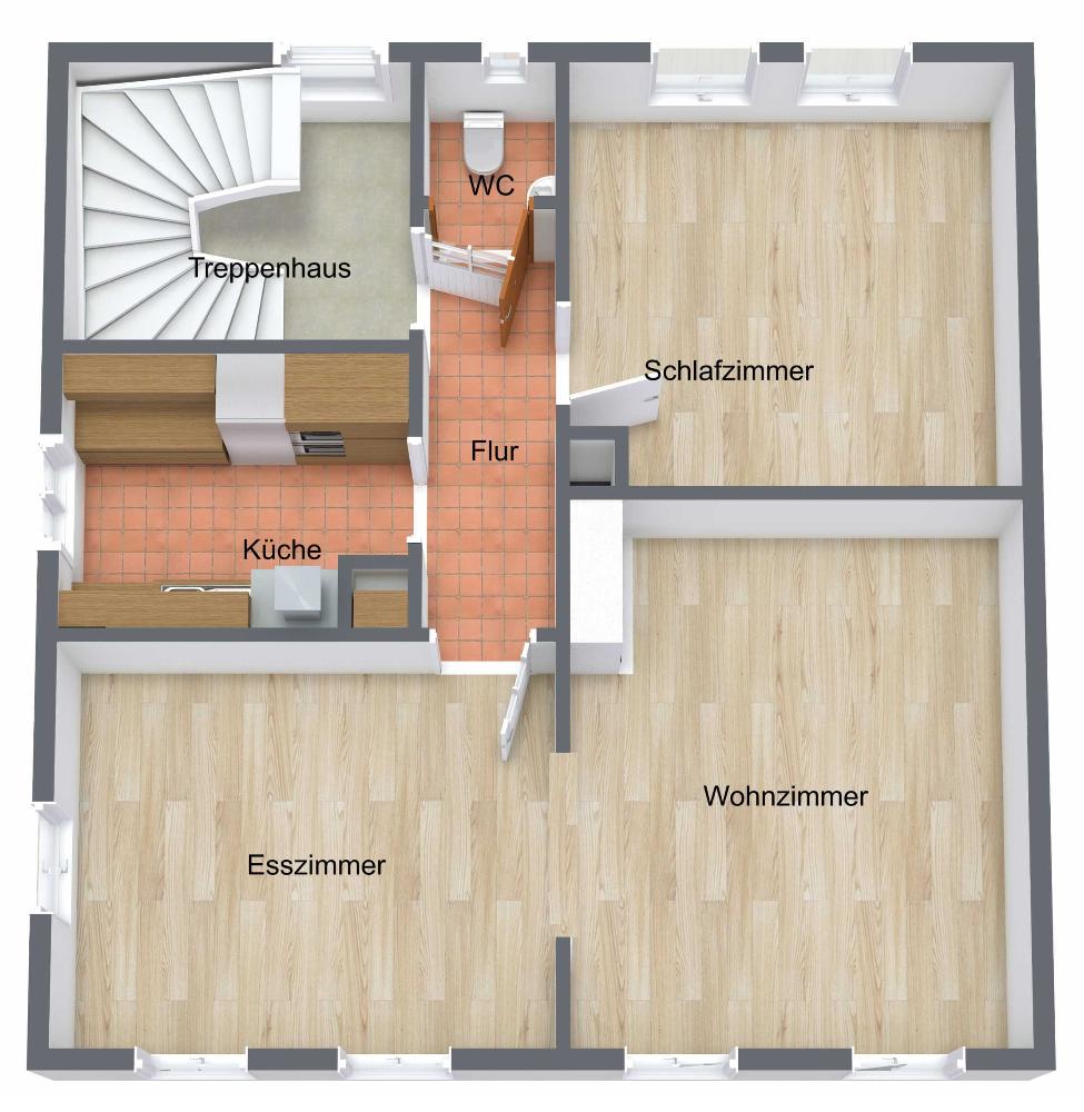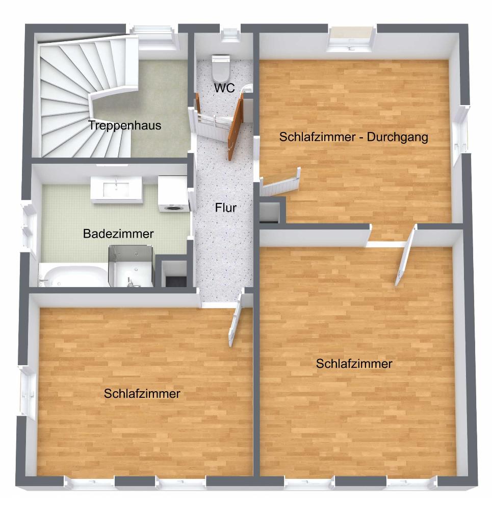 – erstes Obergeschoss und darüber liegendes Dachgeschoss, Zugang über das gemeinschaftliche Treppenhaus