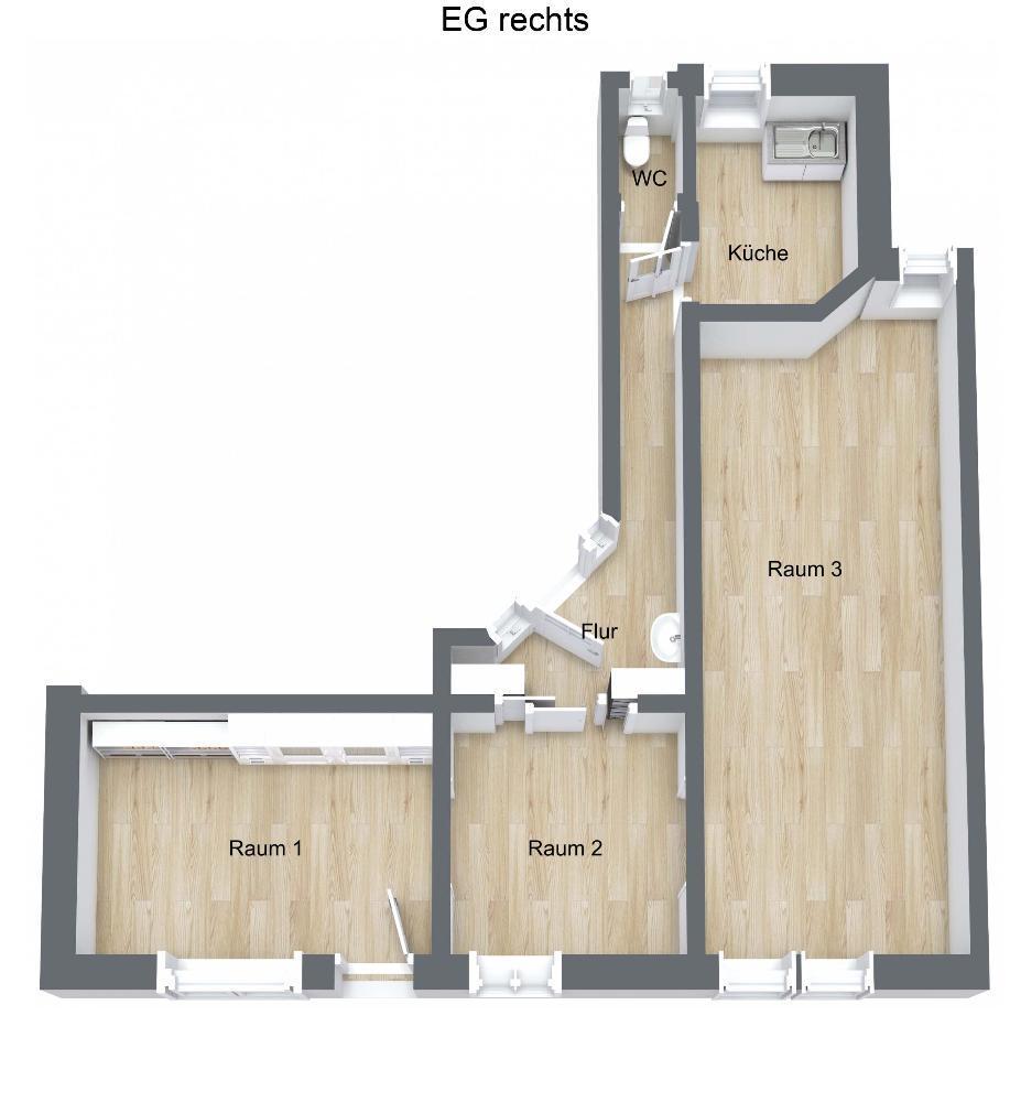 – zwei weitere miteinander geöffnete Räume, jedoch auch mit einer Leichtbauwand wieder separierbar