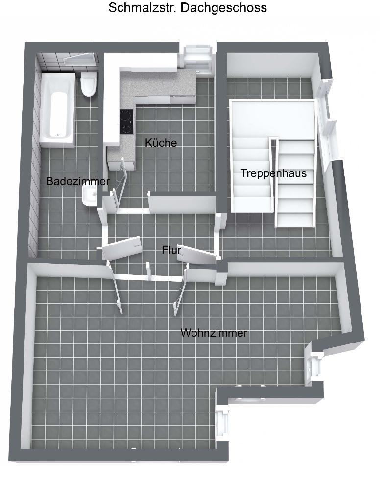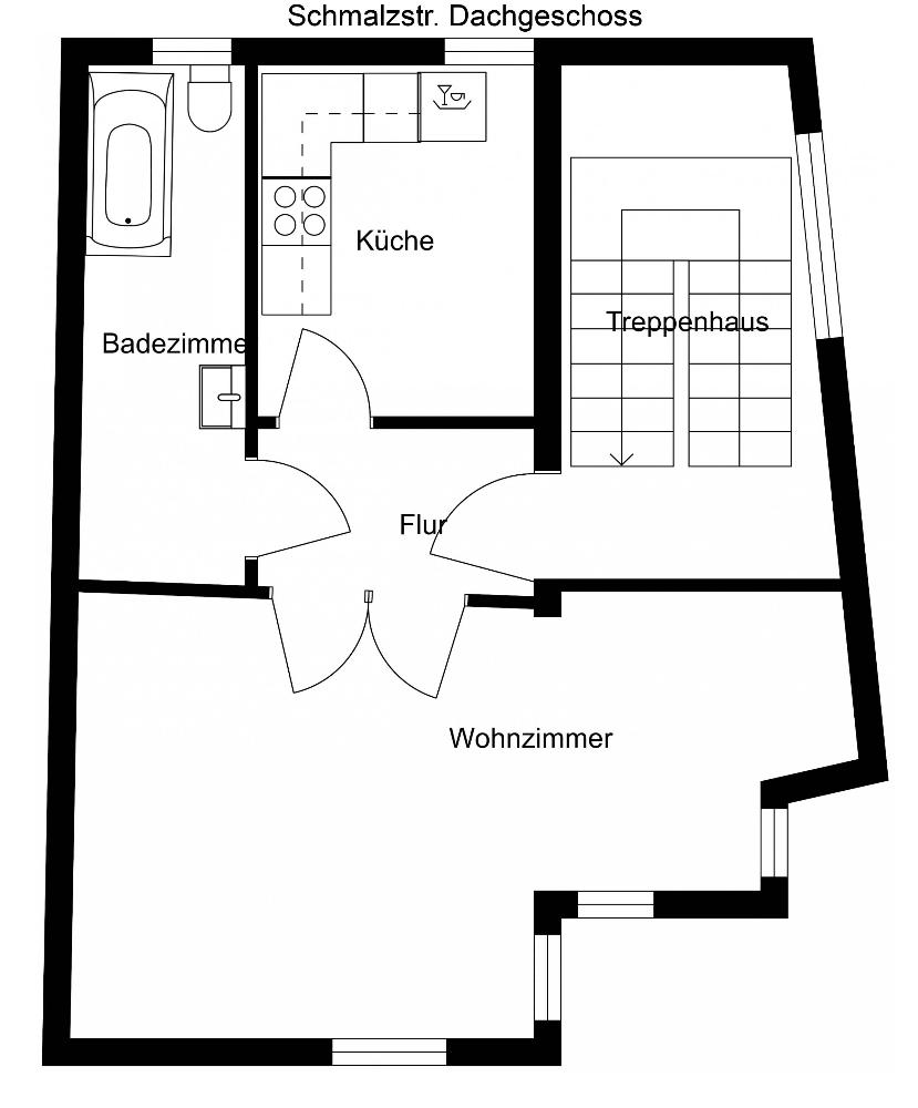 – helle Wohnung, im Dachgeschoss, ca. 36 m², Miete warm 740 €